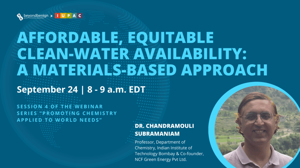 This is the 4th installment of the webinar series, “Promoting Chemistry Applied to World Needs” presented by Beyond Benign and IUPAC Chemrawn. If you haven’t already registered for this free series, RSVP here! https://buff.ly/4Gck2pv
